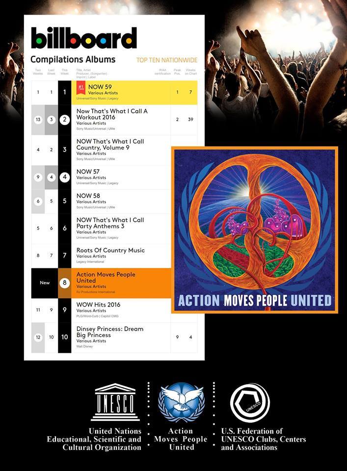 Le double CD avec 45 plages avec des textes dits en musique et des chansons sortira officiellement le 21 septembre 2016. L’album est disponible en téléchargement digital chez iTunes, Amazon et autres boutiques à travers le monde. Nous vous invitons à visiter notre site pour plus de détails : www.ActionMovesPeopleUnited.org.